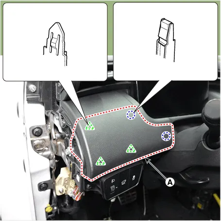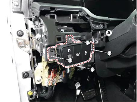 4.Loosen the mounting screws and remove the crash pad lower switch assembly (A).