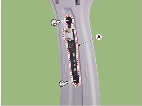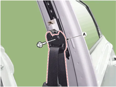 3.Loosen the mounting bolt and remove the front seat belt upper anchor (A).