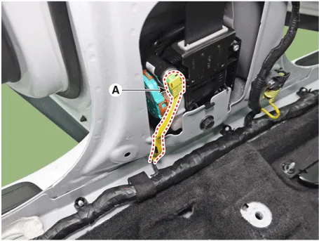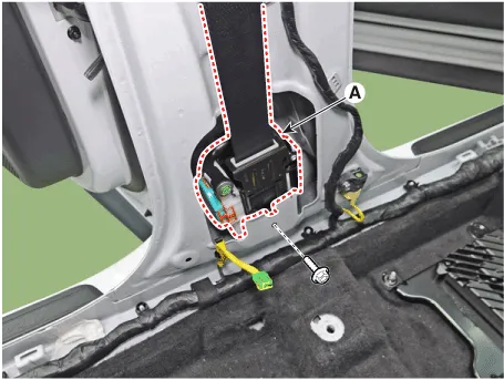 5.Loosen the mounting bolt and remove the front seat belt pretensioner (A).