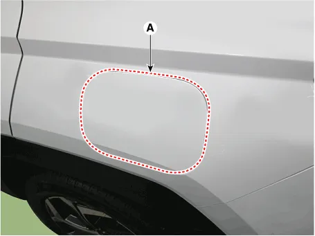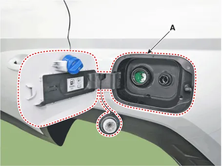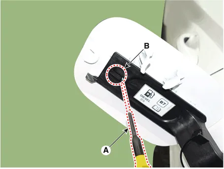 6.Using a screwdriver or remover, remove the fuel filler door assembly (A).
