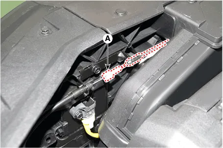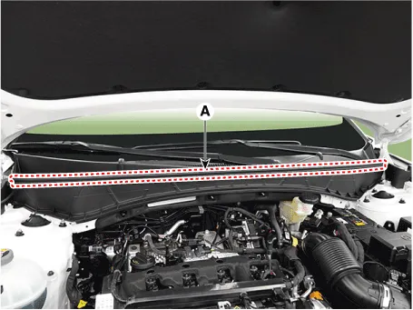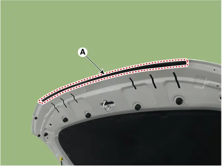 1.Loosen the mounting clips, remove the hood seal weatherstrip (A).