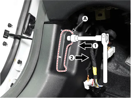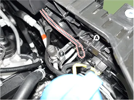 4.Press the rock pin to separate the hood latch connector (A) and disconnect wiring clip.