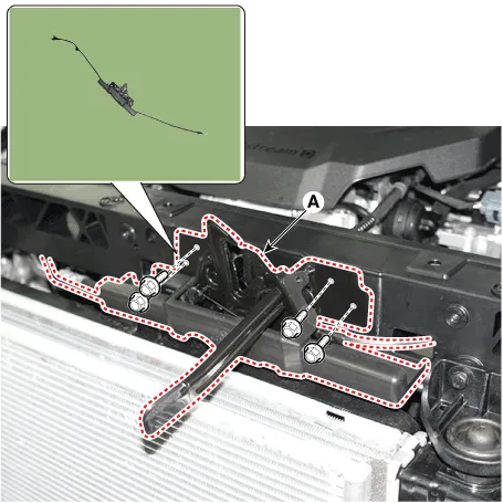 5.Loosen the mounting bolts, remove the hood latch assembly (A).
