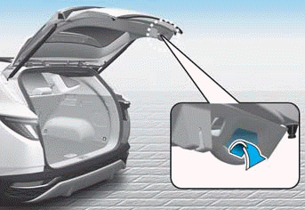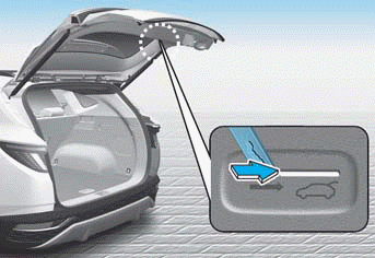 2. Slide the latch in the direction of the arrow to unlock the liftgate.
