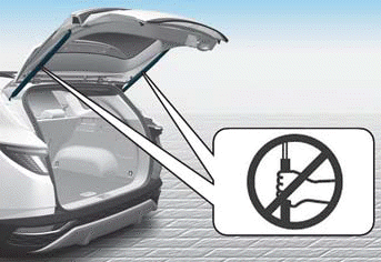 Always close the liftgate before driving. Do not grab or hold on to the liftgate support struts or they may be damaged. Deformation of the liftgate support struts may result in vehicle damage and personal injury.
