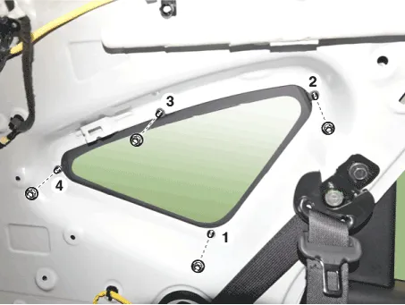 • Install the quater fixed glass by tightening the bolts, in the sequence as shown.