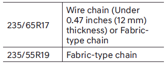 When using tire chains, attach them to the front wheels.