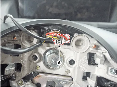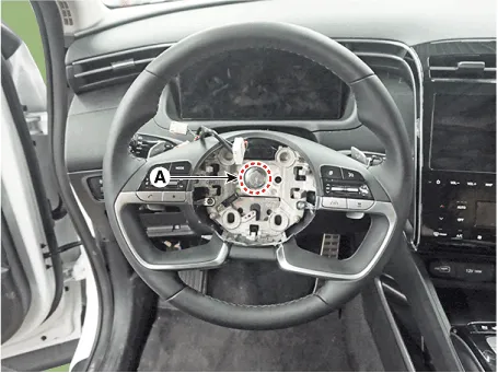 7.Remove the steering wheel damper (A) after loosening the mounting bolts.